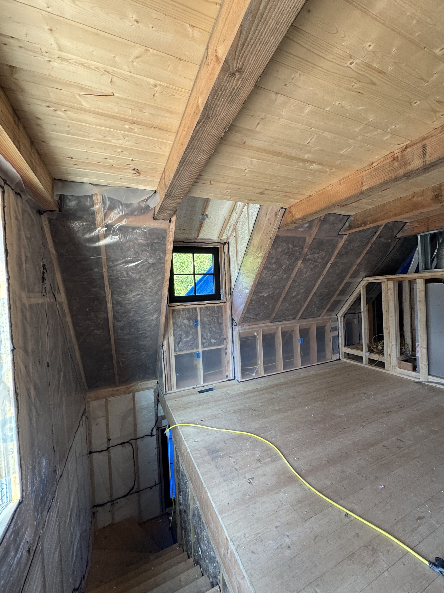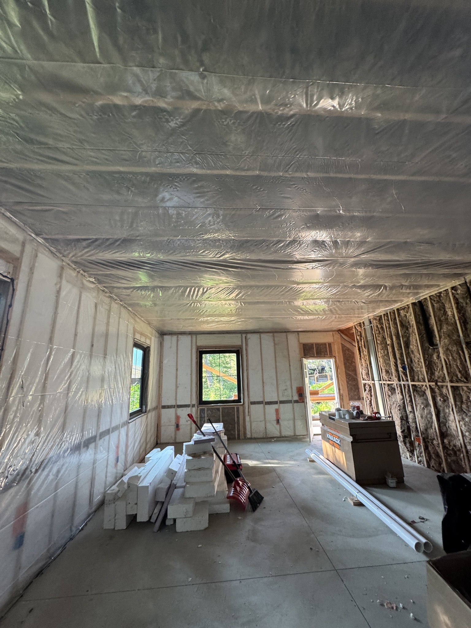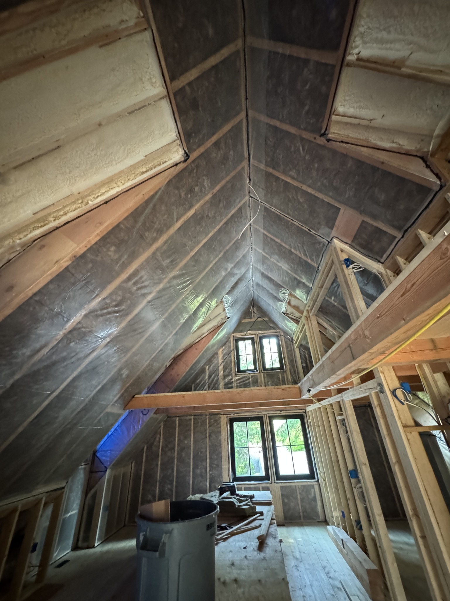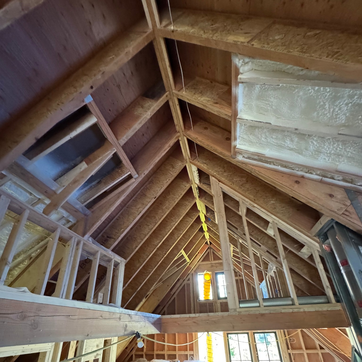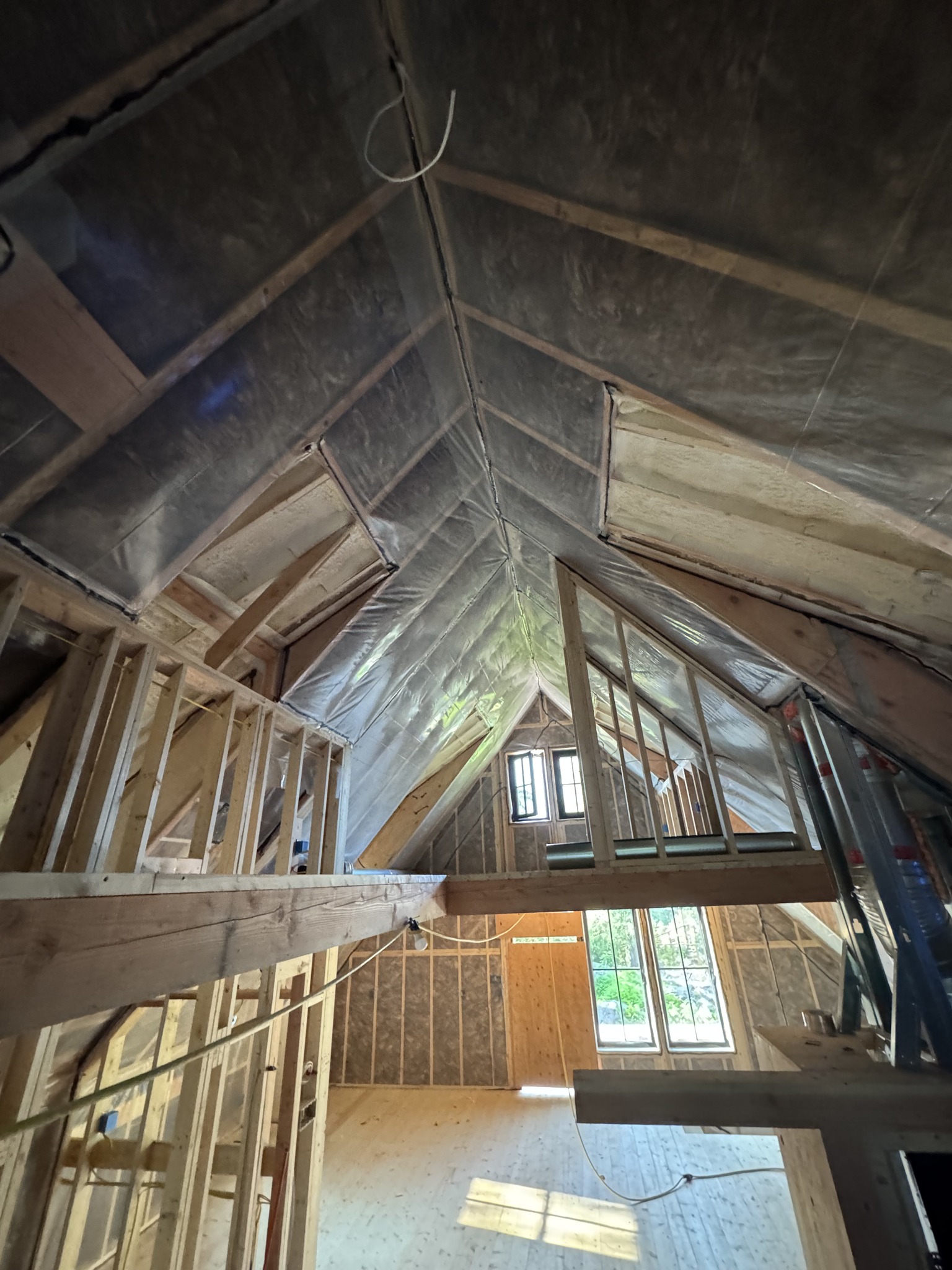 This residential insulation project in Girdwood included a combination of closed-cell spray foam and fiberglass batts to create a well-sealed, energy-efficient home. Spray foam was applied in the dormers and rim joist to improve air sealing and moisture control in critical areas, while fiberglass batts were installed throughout the rest of the home for consistent thermal performance. The result is a tighter building envelope designed for reliable comfort and efficiency.